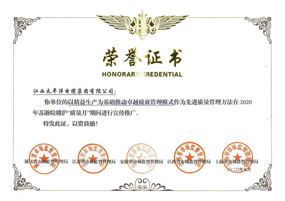 公司以精益生产为基础推动卓越绩效管理模式在生产过程中全员参与,把控质量、维持质量、提升质量。这一科学有效的管理方法在2020年“苏浙皖赣沪”四省一市市场监管局联合开展的“先进质量管理方法100佳” 评选活动中,成功入选“100佳先进质量管理方法”。公司在质量管理方面先后获得诸多荣誉:“质量信用AAA级企业”、“江西省质量管理先进企业”、“四省一市质量管理先进企业”等。